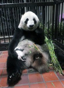 赤ちゃんパンダ誕生をアピールする店頭風景