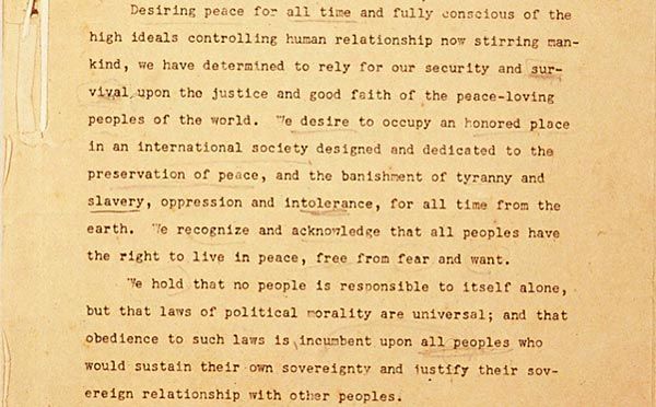 日本国憲法前文に相当するGHQ草案の一部(写真=国立国会図書館ウェブサイトより転載)