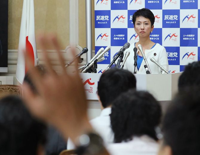 記者会見で辞任を表明した民進党の蓮舫代表=7月27日、国会内(写真=時事通信フォト)
