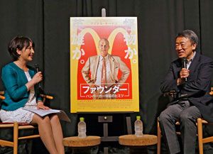池上彰・東京工業大学特命教授(右)。映画『ファウンダー ハンバーガー帝国のヒミツ』トークイベントの様子。