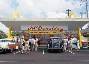 新店舗の前で得意げに両手を広げるマイケル・キートン演じるレイ・クロック。(C)2016 SPEEDEE DISTRIBUTION, LLC. ALL RIGHTS RESERVED.