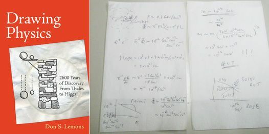 (左)Drawing Physicsのカバーは紙ナプキンに描いた自由落下の絵(右)物理学者は数式も紙ナプキンに描きます(写真提供:村山斉)