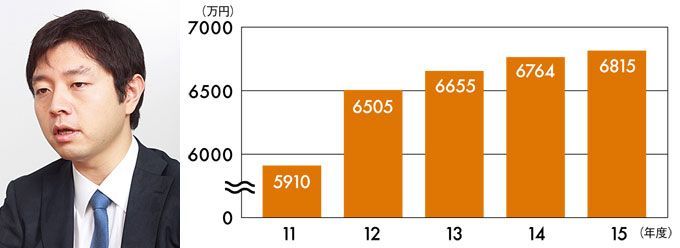 (左)三谷産業では問題点の指摘を改善に向けた提案として前向きに捉えていると話す三谷忠照常務。(右)一騎当千の社員が増え1人当たりの売上高もアップ※単体ベース