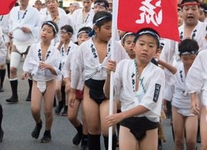 中洲流の子どもたち。彼らが次代の山笠を担っていく(撮影・比田勝大直)