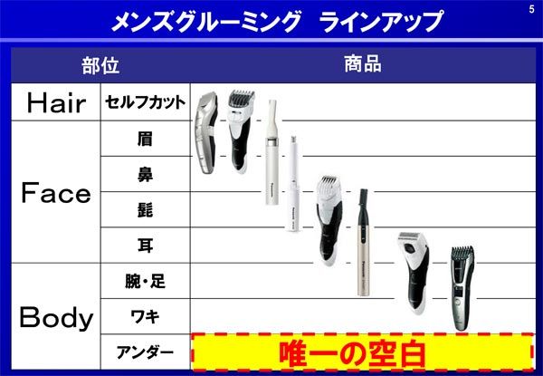 発表会には陣内氏が下半身だけのマネキンとともに登場。ボディトリマーで毛を処理する実演を行った。