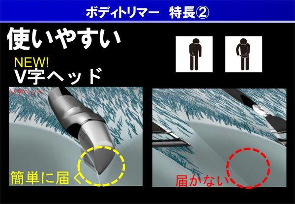 発表会には陣内氏が下半身だけのマネキンとともに登場。ボディトリマーで毛を処理する実演を行った。