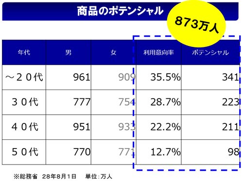 前例がない商品だけに、需要を読むのも難しい。Webアンケートの結果に人口分布の数字を掛け合わせて予測を出した。