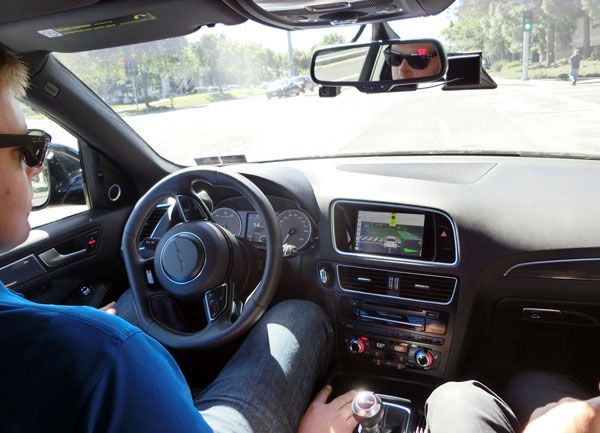 米インテル社がカリフォルニア州サンノゼ市内で自動運転実験車両を走らせる様子(筆者撮影)