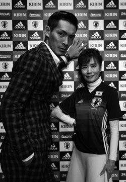 小柳ルミ子さん×槙野智章選手。日本代表ユニのマネキンに囲まれて。