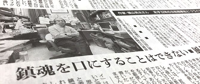朝日新聞の横山秀夫氏へのインタビュー記事(8月11日付)。見出しには「鎮魂を口にすることはできない」とあった。