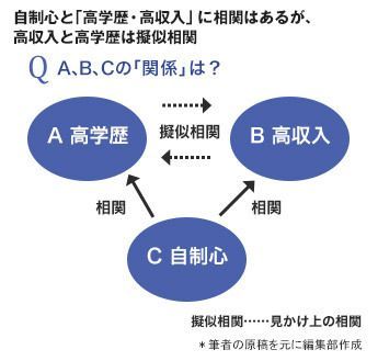 自制心と「高学歴・高収入」に相関はあるが、高収入と高学歴は擬似相関