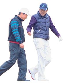ゴルフをする安倍総理ら。(時事通信フォト=写真)