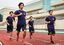 グラウンドで練習する環境情報学部4年の下川唯布輝さん(左から2番目)ら。