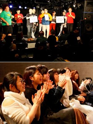 福岡吉本が福岡市・天神で今春開いた公開オーディション。九州内外から18?25歳の素人芸人8組12人が出場し、観客や審査員を前に自作のネタを次々披露した