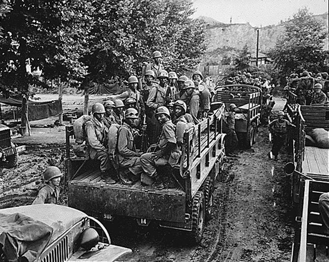 開戦まもない1950年7月、朝鮮戦争の前線に送り込まれる米陸軍の兵士。(写真=時事通信フォト)