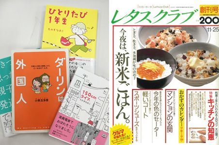(左)松田さんはコミックエッセイ部門の編集長も兼任している。小栗左多里『ダーリンは外国人』、たかぎなおこ『150cmライフ。』などのヒット作も手がけた。(右)1987年(昭和62年)発売のレタスクラブ創刊号。今年で創刊30周年を迎える。