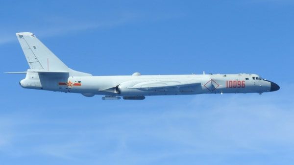 中国のH-6爆撃機。防衛省統合幕僚監部の発表資料より。航空自衛隊撮影。