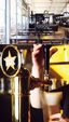 (上)パーフェクトビヤガーデン1Fの様子。(下)後から泡を載せる“二度注ぎ”で最高品質の「パーフェクト黒ラベル」を提供する。