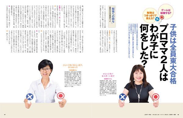 発売中の『プレジデントFamily2017秋号』より。4人の子供が東大理IIIに進学した佐藤亮子さんと、2人の子供が東大に進学し、自身も東大卒の大岸良恵さんの対談企画。「子供は全員東大合格 プロママ2人はわが子に何をした?」。(人物撮影=小松士郎 以下同)