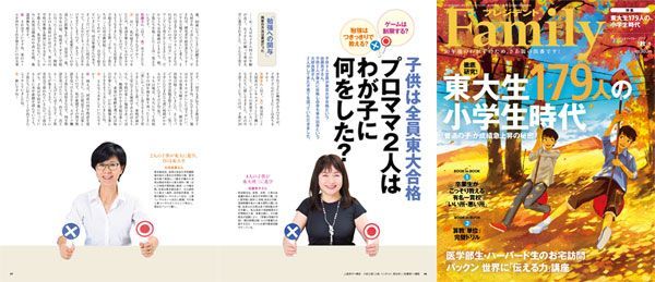 発売中の『プレジデントFamily2017秋号』より。4人の子供が東大理IIIに進学した佐藤亮子さんと、2人の子供が東大に進学し、自身も東大卒の大岸良恵さんの対談企画。「子供は全員東大合格 プロママ2人はわが子に何をした?」。(人物撮影=小松士郎 以下同)