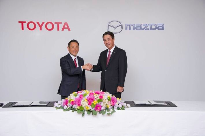 トヨタの豊田章男社長とマツダの小飼雅道社長
