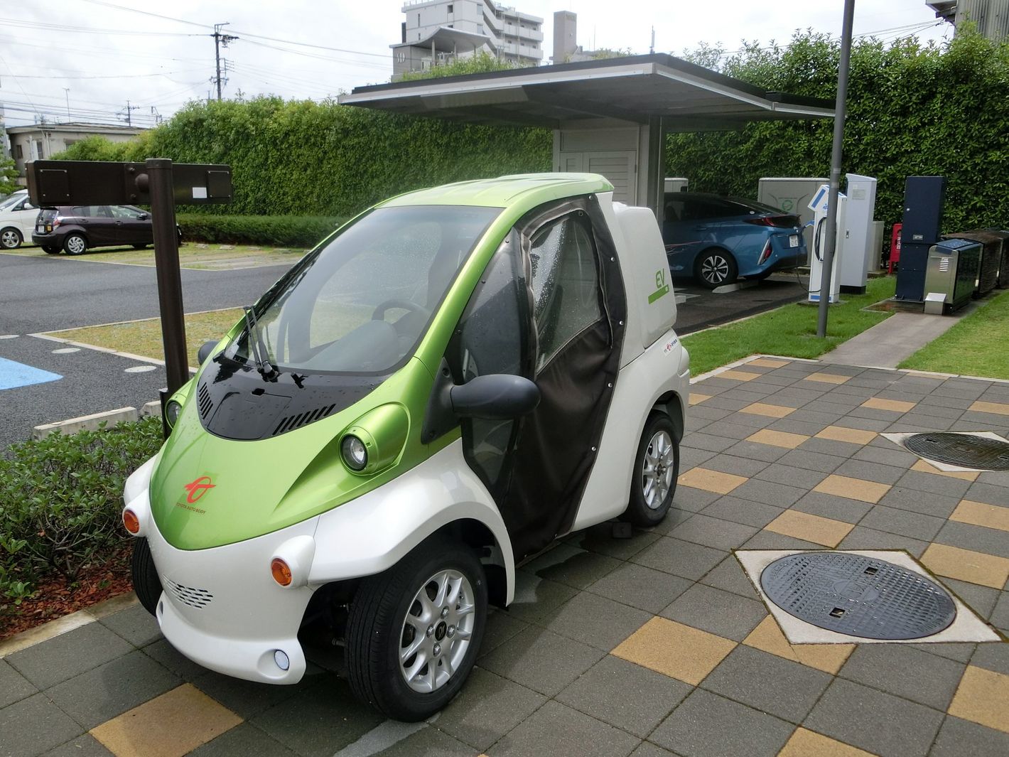 ミニカー規定で量産されている、小型EVのトヨタ車体コムス(筆者撮影)