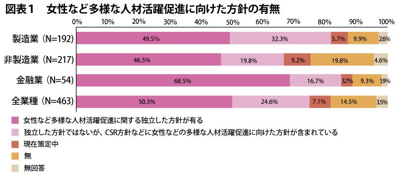 図表1 女性など多様な人材活躍促進に向けた方針の有無(出所)経済産業省・東京証券取引所「平成28年度なでしこ銘柄」レポート