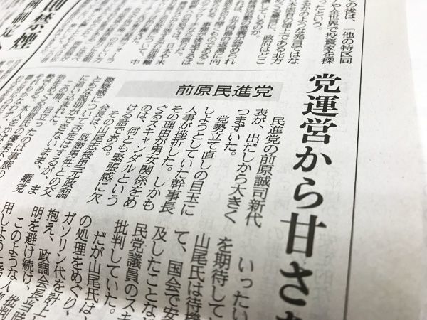 産経新聞の社説(9月9日付)。見出しは「前原民進党 党運営から甘さをなくせ」。