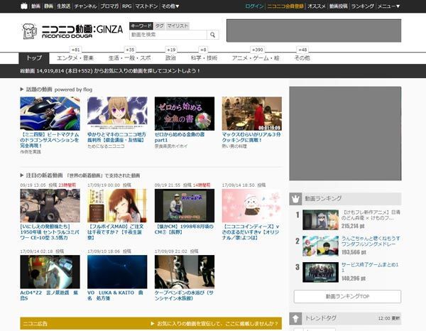 ニコニコ動画のトップページ。動画再生中、ユーザーのコメントが右から左へ流れる。
