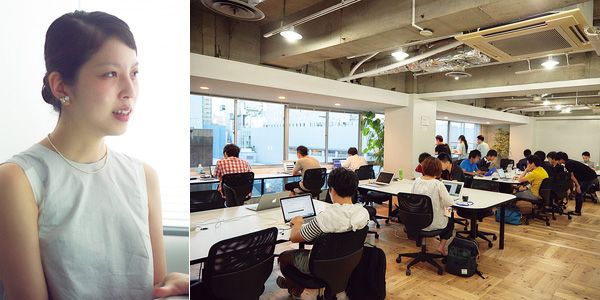 (左)div取締役 中山紗彩さん(右) 株式会社divが運営するプログラミングスクールの様子。主に文系の学生やサラリーマンが学びに来ている。