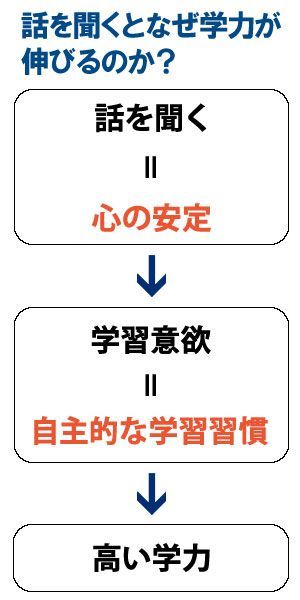 *川島教授によれば「話を聞く」といった家族のコミュニケーションが多いと、子供の自主的な学習習慣などが形成され、それによって高い学力を備えられるという因果関係がわかった。