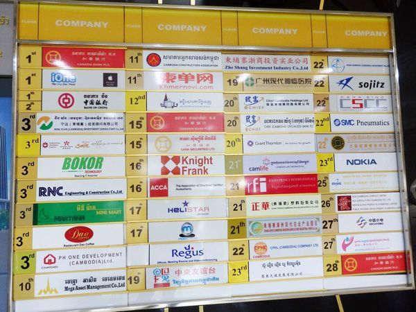 プノンペン市内の一等地にあるオフィスビル。中国銀行をはじめ、中国企業の入居数はかなり多そうだ。