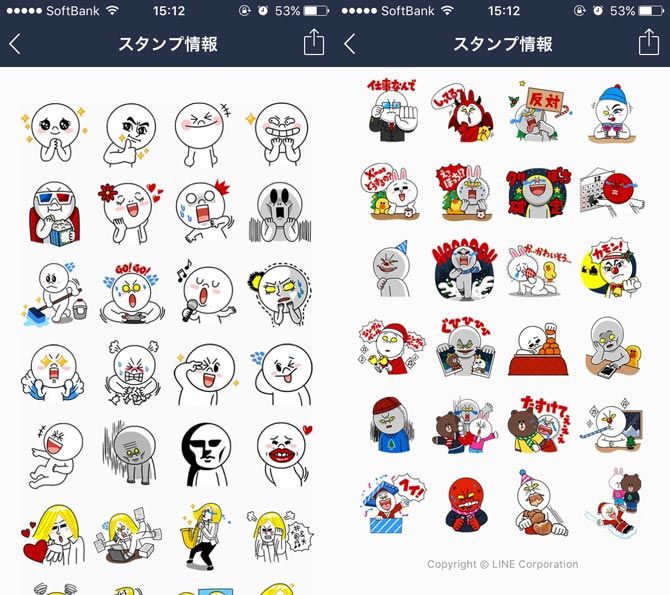 LINE公式の人気キャラクター、ブラウン&コニーも初期は無言(画像左)。新しいスタンプではよくしゃべるように。