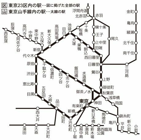 「都区内」と「山手線内」について。JR東日本「特定の都区市内駅を発着する場合の特例について」より抜粋(https://www.jreast.co.jp/kippu/11041.html)。