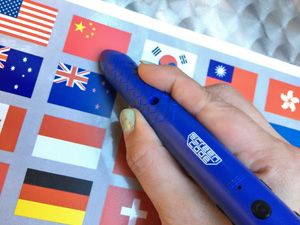 スクリーンコード読み取り専用機の電子ペン「スピークン」を使って専用冊子に印刷された文字やイラストに触れると、対応する言葉を音声で読み上げる。