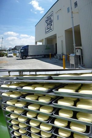 (上)千葉工場の外観。(下)千葉工場でのバンの生産ライン。これはシロノワールのデニッシュだ。(2016年5月、筆者撮影)