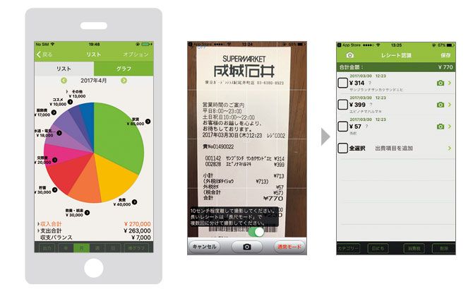 基本的な機能はすべて無料。ただし、レシート読み込みやバックアップデータ保存などは有料。