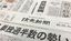 読売新聞(10月12日付、手前)と朝日新聞(同じく10月12日付、奥)の1面トップ。