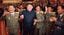 水爆実験成功を祝う金正恩朝鮮労働党委員長(写真左から2人目)。(朝鮮通信=時事=写真)