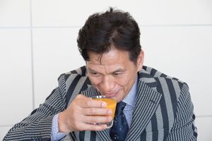 取材ルームにみかんの香りが漂う。飲むと、味は濃厚だが、自然にカラダに吸い込まれていく。