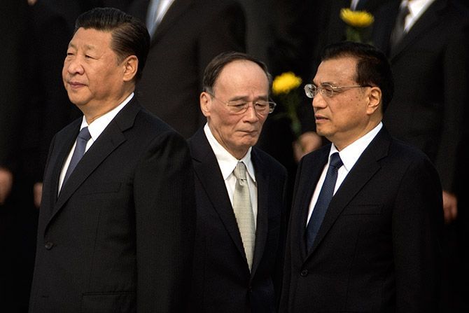 2017年9月30日、「烈士記念日」の式典に出席した習近平(左)、王岐山(中)、李克強(右)の各氏。(写真=AP/アフロ)