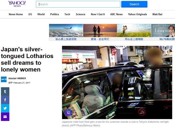 2017年2月21日付で通信会社AFPが世界に配信した歌舞伎町のホストクラブに関する記事。