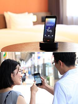 客室備え付けのスマートフォン「handy」(画像提供/ロイヤルホールディングス)