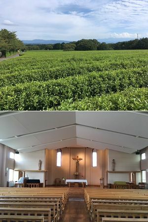 学校が所有する茶畑「不二農園」とチャペル