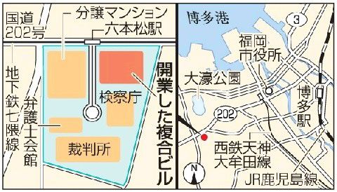 (上)「六本松421」(左側)が開業し、生まれ変わった六本松(下)3-6階にある福岡市科学館の入り口。長蛇の列が連日続いている