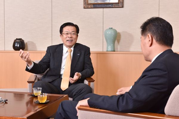ブラザー工業の小池利和社長(左)とコメダ珈琲店の臼井興胤社長
