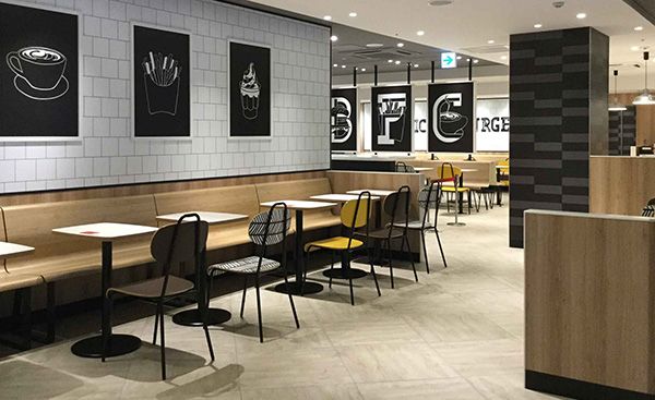 渋谷駅前の東映プラザ店店内。モノトーンを基調にしたデザインにリニューアルされている。(画像/日本マクドナルド提供)