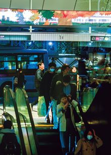 (写真上)「オフィスおかん」。(写真下)バランスボードに立って仕事をする社員も。
