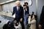 11月10日、データ改竄について記者会見を行い、会場を後にする神戸製鋼所の川崎博也会長兼社長(写真=ロイター/アフロ)