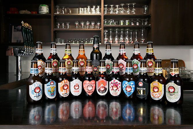 (左)赤米を使用した、レッドライス・エール(右)茨城産の福来みかんを使用した、だいだいビール